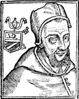 Description: Urban VII, pope of the Roman Catholic Church and bishop of Rome (r. 1590). To the left is Urban’s coat of arms with the papal triple tiara above and the crossed keys of the kingdom of heaven behind.