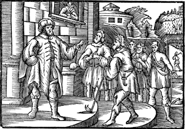 Description: The landowner pays his hired help at the end of the day.