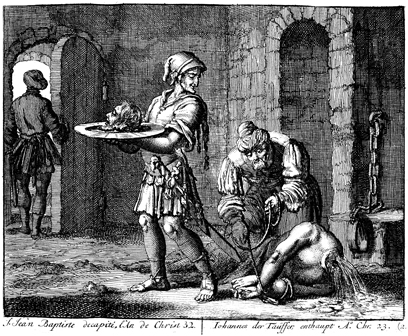 Description: A depiction of John the Baptist being decapitated on the order of King Herod. His body is shown lying on the floor of the prison, and a servant holds his head on a platter to be presented to Salome.