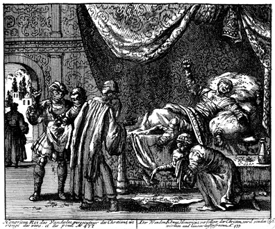 Description: God causes worms and lice to gnaw the flesh of Honoricus, Arian king of the Vandals, for his terrible persecution of Christians. As a result, his skin putrefies and his limbs begin to fall off.