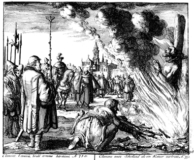 Description: The papal legate Boniface has Clement of Scotland excommunicated and burned at the stake for heresy.