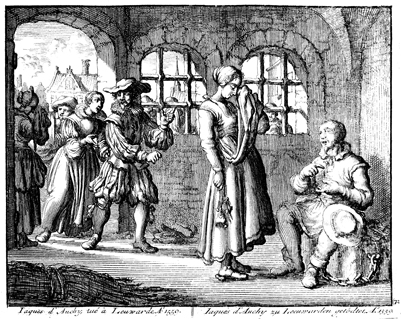 Description: Having been thrown into to prison ostensibly because of his Anabaptist faith, but actually due to the treacherous dealings of the councilor of Harlingen, Jacques d’Auchy attempts to console his pregnant and grieving wife as he awaits his execution.