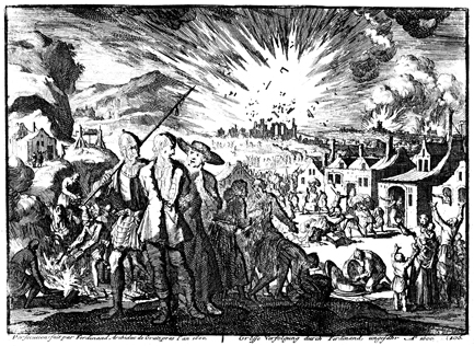 Description: Holy Roman Emperor Ferdinand I (1503-1564 C.E.) institutes an empire-wide persecution of the Anabaptists, in the belief that they are dangerous to the state. In the background, Ferdinand’s men plunder the homes of Anabaptists and raze their towns and villages .