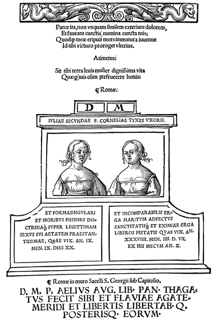 Description: Title of Petrus Apianus’ work with busts of two women below and scrollwork above.