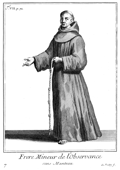 Description: A Franciscan friar of the Observant order without his mantle. Engraved by François de Poilly (1623-1693).