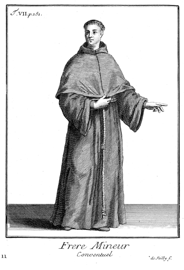Description: A Franciscan friar of the Conventual order. Engraved by François de Poilly (1623-1693).