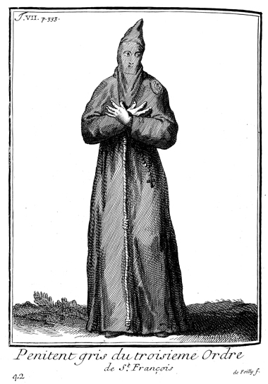 Description: A gray penitent of the Third Order of Saint Francis. Engraved by François de Poilly (1623-1693).