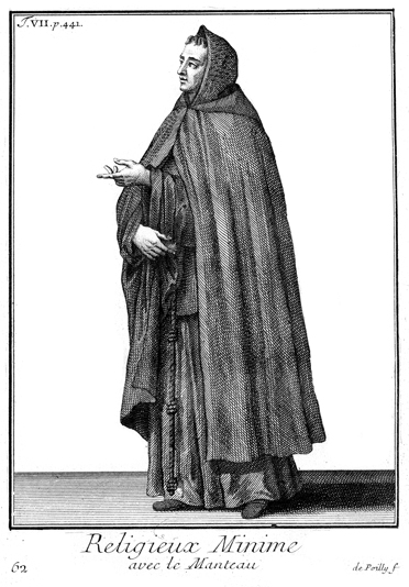 Description: A member of the Order of the Minims, shown here with his mantle. Engraved by François de Poilly (1623-1693).