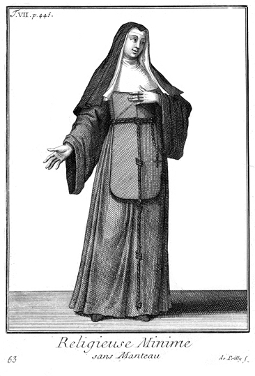 Description: A member of the Order of the Minims, shown here without her mantle. Engraved by François de Poilly (1623-1693).