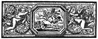 Description: This historiated headpiece features two cherubim holding an image of a flying angel blowing a trumpet.