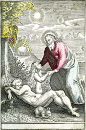 Description: A depiction of God creating Eve from the side of Adam as he sleeps.