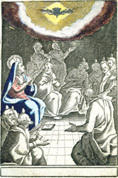 Description: The Holy Spirit in the form of a dove descends on the believers gathered together on the day of Pentecost.