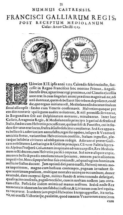 Description: A depiction of two coins, one with a portrait of King Francisco, and the other with two globes beneath a single crown.