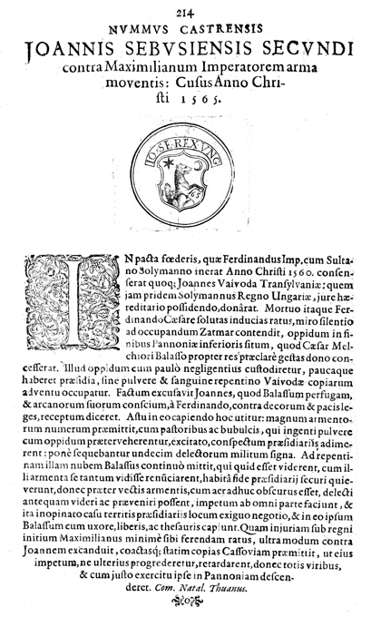 Description: A depiction of a coin with a fox flanked by the year 1565. Above the fox there is a crescent moon to the right and a six-pointed star to the left.