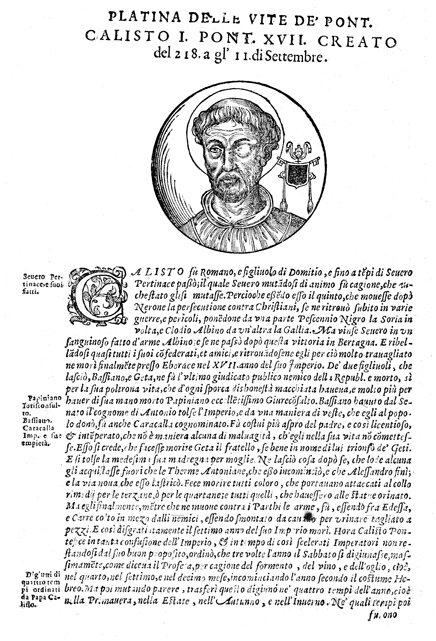 [Historia delle vite de sommi pontefici : dal Salvator Nostro sino a Gregorio XV / Scitta già da Battista Platina Cremonese ; dal P.F. Onofrio Panvinio da Verona, da Antonio Cicarelli da Foligno e da D. Giovanni Stringa Venetiano. Et hora ampliata dal M.R.P.F. Abramo Bzovio, Maestro di Theologia dell'ordine de Predicatori delle vite di Paolo V & di Greg. XV. Illustrata con le Annotationi del Panvinio, nelle vie descritte dal Platina, e con la Cronologia Ecclesiastica dell'istesso, tradotta in lingua Italiana & ampliata dal R.M. Bartolomeo Dionigi da Fano, da D. Lauro Testa, e dal detto P.F. Abramo Bzovio. Ornata nuovamente di bellissimi ritratti di tutti i Pontefici al naturale. Arrichita con'nomi, cognomi, patrie et titoli di tutti quei Cardinali de quali s'è potuto haver cognitione, raccolti per il sudetto Dionigi dall'opere del Panvinio e da gli arti della Cancellaria Apostolica.]