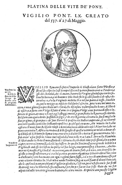 [Historia delle vite de sommi pontefici : dal Salvator Nostro sino a Gregorio XV / Scitta già da Battista Platina Cremonese ; dal P.F. Onofrio Panvinio da Verona, da Antonio Cicarelli da Foligno e da D. Giovanni Stringa Venetiano. Et hora ampliata dal M.R.P.F. Abramo Bzovio, Maestro di Theologia dell'ordine de Predicatori delle vite di Paolo V & di Greg. XV. Illustrata con le Annotationi del Panvinio, nelle vie descritte dal Platina, e con la Cronologia Ecclesiastica dell'istesso, tradotta in lingua Italiana & ampliata dal R.M. Bartolomeo Dionigi da Fano, da D. Lauro Testa, e dal detto P.F. Abramo Bzovio. Ornata nuovamente di bellissimi ritratti di tutti i Pontefici al naturale. Arrichita con'nomi, cognomi, patrie et titoli di tutti quei Cardinali de quali s'è potuto haver cognitione, raccolti per il sudetto Dionigi dall'opere del Panvinio e da gli arti della Cancellaria Apostolica.]