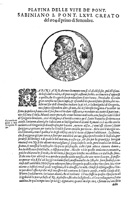 [Historia delle vite de sommi pontefici : dal Salvator Nostro sino a Gregorio XV / Scitta già da Battista Platina Cremonese ; dal P.F. Onofrio Panvinio da Verona, da Antonio Cicarelli da Foligno e da D. Giovanni Stringa Venetiano. Et hora ampliata dal M.R.P.F. Abramo Bzovio, Maestro di Theologia dell'ordine de Predicatori delle vite di Paolo V & di Greg. XV. Illustrata con le Annotationi del Panvinio, nelle vie descritte dal Platina, e con la Cronologia Ecclesiastica dell'istesso, tradotta in lingua Italiana & ampliata dal R.M. Bartolomeo Dionigi da Fano, da D. Lauro Testa, e dal detto P.F. Abramo Bzovio. Ornata nuovamente di bellissimi ritratti di tutti i Pontefici al naturale. Arrichita con'nomi, cognomi, patrie et titoli di tutti quei Cardinali de quali s'è potuto haver cognitione, raccolti per il sudetto Dionigi dall'opere del Panvinio e da gli arti della Cancellaria Apostolica.]