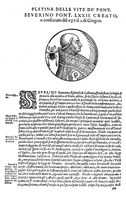 [Historia delle vite de sommi pontefici : dal Salvator Nostro sino a Gregorio XV / Scitta già da Battista Platina Cremonese ; dal P.F. Onofrio Panvinio da Verona, da Antonio Cicarelli da Foligno e da D. Giovanni Stringa Venetiano. Et hora ampliata dal M.R.P.F. Abramo Bzovio, Maestro di Theologia dell'ordine de Predicatori delle vite di Paolo V & di Greg. XV. Illustrata con le Annotationi del Panvinio, nelle vie descritte dal Platina, e con la Cronologia Ecclesiastica dell'istesso, tradotta in lingua Italiana & ampliata dal R.M. Bartolomeo Dionigi da Fano, da D. Lauro Testa, e dal detto P.F. Abramo Bzovio. Ornata nuovamente di bellissimi ritratti di tutti i Pontefici al naturale. Arrichita con'nomi, cognomi, patrie et titoli di tutti quei Cardinali de quali s'è potuto haver cognitione, raccolti per il sudetto Dionigi dall'opere del Panvinio e da gli arti della Cancellaria Apostolica.]