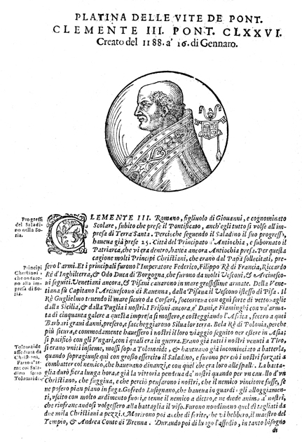 [Historia delle vite de sommi pontefici : dal Salvator Nostro sino a Gregorio XV / Scitta già da Battista Platina Cremonese ; dal P.F. Onofrio Panvinio da Verona, da Antonio Cicarelli da Foligno e da D. Giovanni Stringa Venetiano. Et hora ampliata dal M.R.P.F. Abramo Bzovio, Maestro di Theologia dell'ordine de Predicatori delle vite di Paolo V & di Greg. XV. Illustrata con le Annotationi del Panvinio, nelle vie descritte dal Platina, e con la Cronologia Ecclesiastica dell'istesso, tradotta in lingua Italiana & ampliata dal R.M. Bartolomeo Dionigi da Fano, da D. Lauro Testa, e dal detto P.F. Abramo Bzovio. Ornata nuovamente di bellissimi ritratti di tutti i Pontefici al naturale. Arrichita con'nomi, cognomi, patrie et titoli di tutti quei Cardinali de quali s'è potuto haver cognitione, raccolti per il sudetto Dionigi dall'opere del Panvinio e da gli arti della Cancellaria Apostolica.]