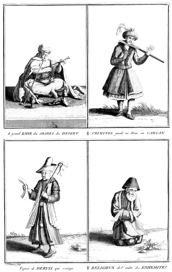 Description: Islam Muslim desert Arab smoke pipe amir aamir ameer criminal carcan pillory stocks prisoner Dervish Darvesh Darvish voyage travel staff rod crook Edhemite monk ascetic hat Jacob Jakob Folkema engraver.