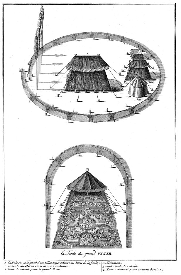 Description: A grand vizier’s camp, including his rest chamber and audience chamber. The chambers include talismans and charms meant to protect them.