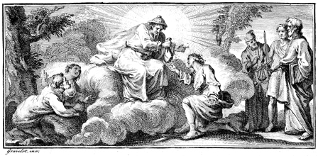 Description: An ornamental headpiece showing one man giving a moneybag to another. Drawn by Hubert-François Gravelot (1699–1773).