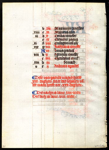 Description: Dutch calendar (leaf v), [ca. 1500].