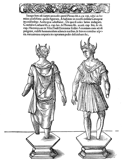 Description: A depiction of two footless Satyrs on pedestals. The figures are also missing their left hands.