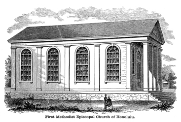 Description: The first Methodist Episcopal Church in Honolulu, built circa 1856.