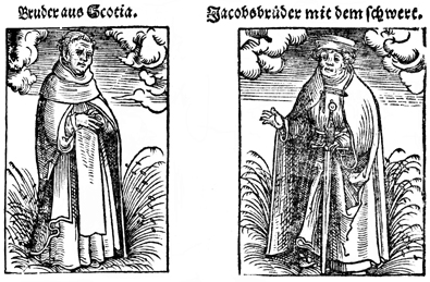 Description: Scotian Brother and Jacob's Brother with the sword. This woodcut was created by Lukas Cranach the Elder.