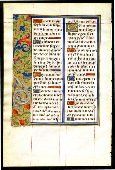 Description: Latin Book of Hours (leaf v), [ca. 1510] France. Similar in style to one in the Rothschild Collection.