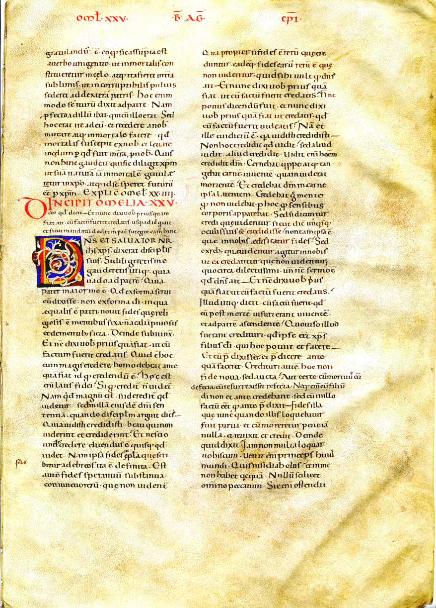 Image Title: St. Augustine's Homilies XXV-XXVI (leaf v) with Initial Letter D